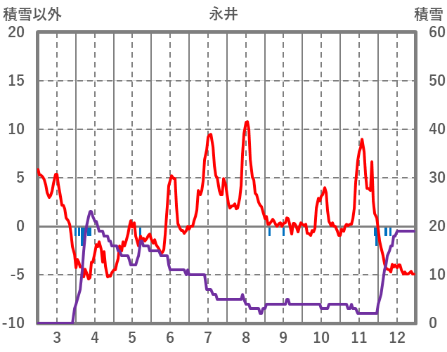 | 日 | 時 | 気温 | 降水 | 風向/風速 | 日照 | 積雪 | 降雪 |