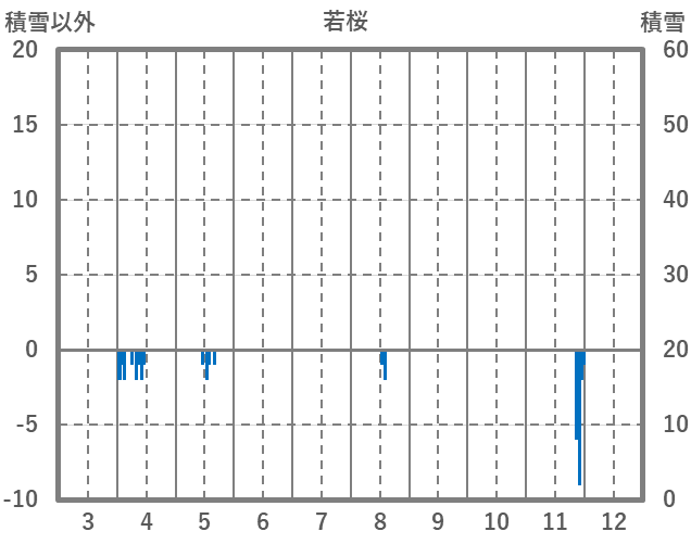 | 日 | 時 | 気温 | 降水 | 風向/風速 | 日照 | 積雪 | 降雪 |