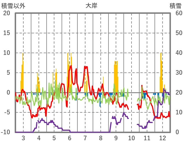| 日 | 時 | 気温 | 降水 | 風向/風速 | 日照 | 積雪 | 降雪 |