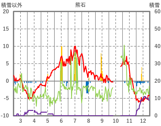 | 日 | 時 | 気温 | 降水 | 風向/風速 | 日照 | 積雪 | 降雪 |