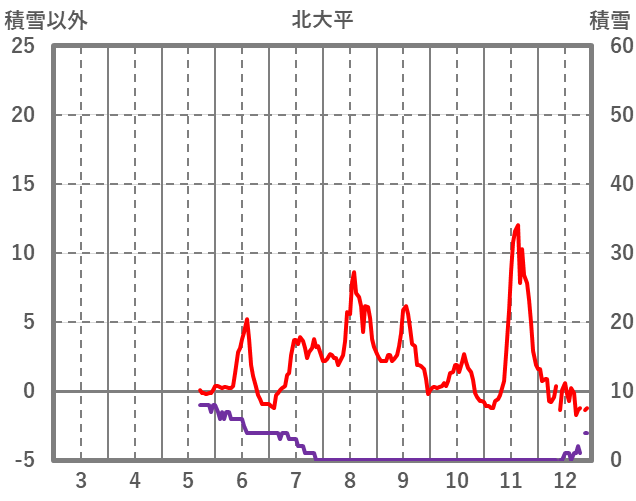 | 日 | 時 | 気温 | 降水 | 風向/風速 | 日照 | 積雪 | 降雪 |