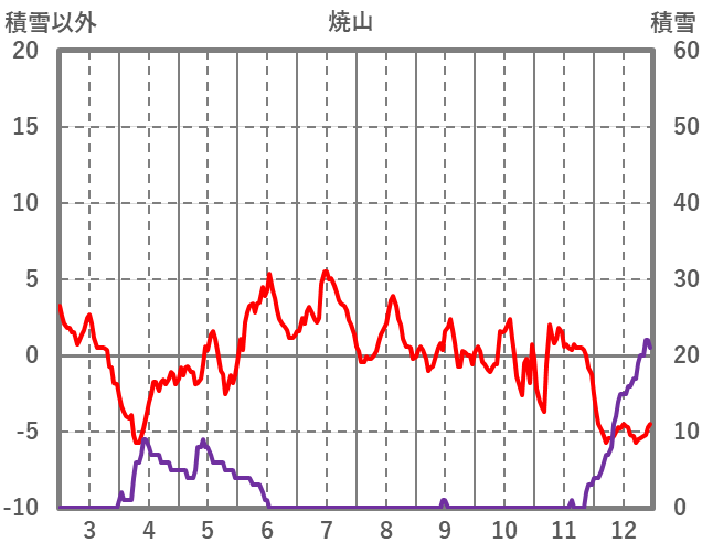 | 日 | 時 | 気温 | 降水 | 風向/風速 | 日照 | 積雪 | 降雪 |