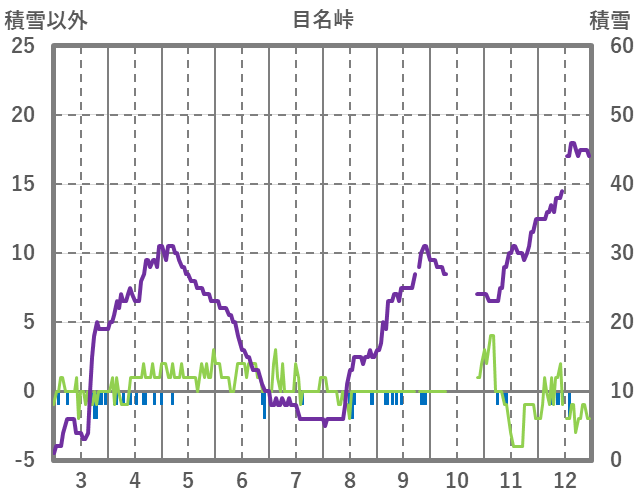 | 日 | 時 | 気温 | 降水 | 風向/風速 | 日照 | 積雪 | 降雪 |