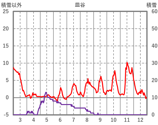 | 日 | 時 | 気温 | 降水 | 風向/風速 | 日照 | 積雪 | 降雪 |