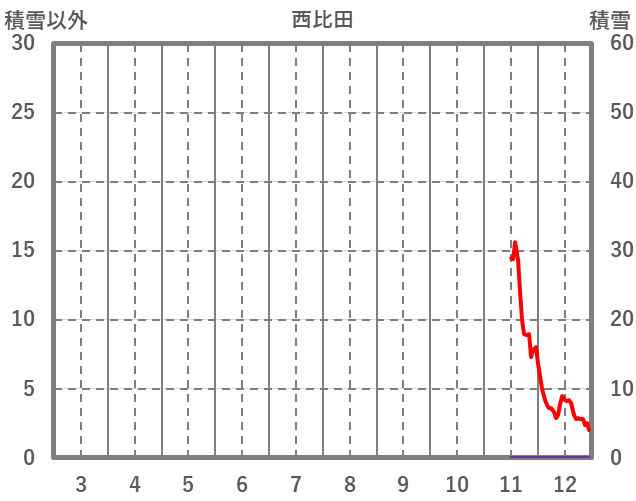 | 日 | 時 | 気温 | 降水 | 風向/風速 | 日照 | 積雪 | 降雪 |