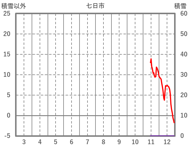 | 日 | 時 | 気温 | 降水 | 風向/風速 | 日照 | 積雪 | 降雪 |
