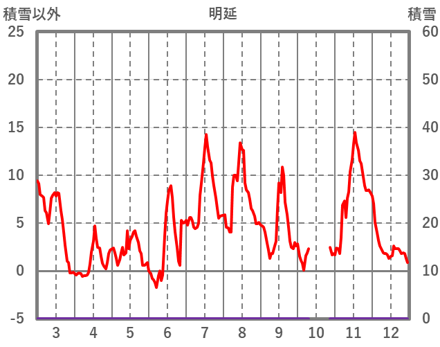 | 日 | 時 | 気温 | 降水 | 風向/風速 | 日照 | 積雪 | 降雪 |
