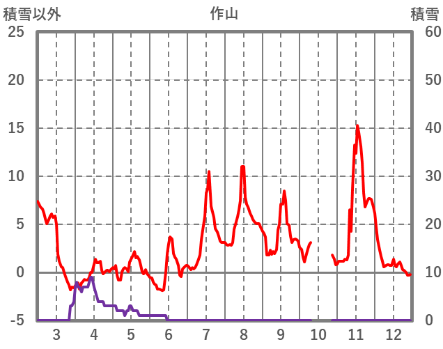 | 日 | 時 | 気温 | 降水 | 風向/風速 | 日照 | 積雪 | 降雪 |