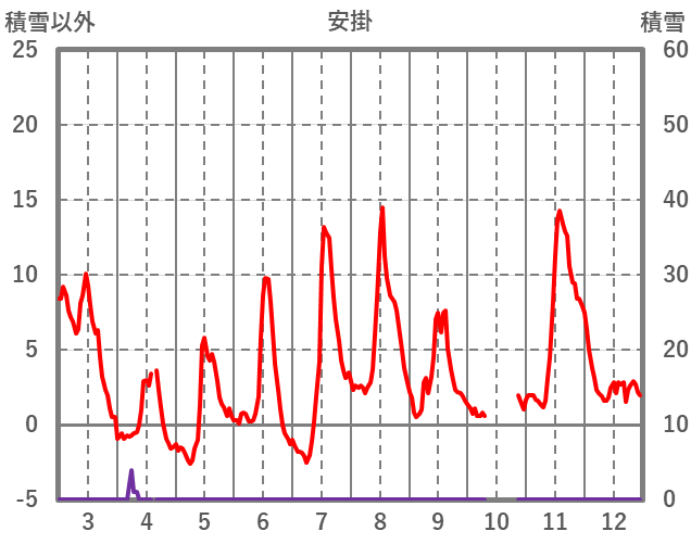 | 日 | 時 | 気温 | 降水 | 風向/風速 | 日照 | 積雪 | 降雪 |