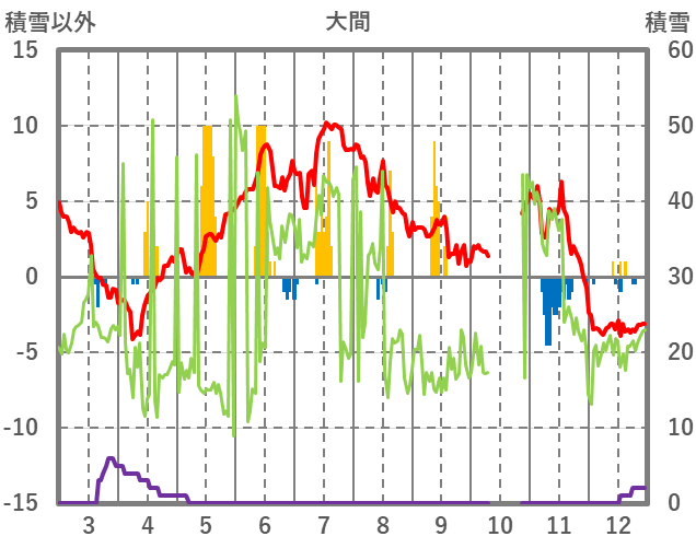 | 日 | 時 | 気温 | 降水 | 風向/風速 | 日照 | 積雪 | 降雪 |