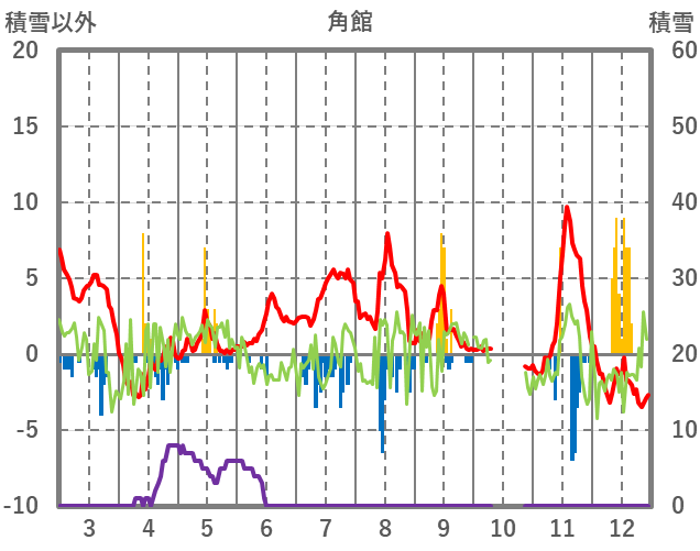 | 日 | 時 | 気温 | 降水 | 風向/風速 | 日照 | 積雪 | 降雪 |