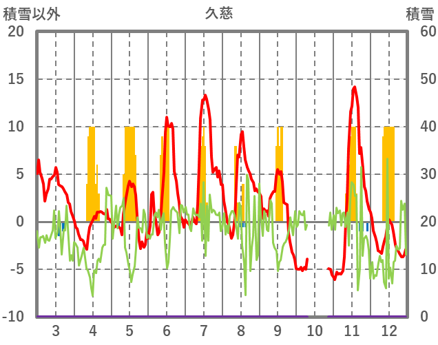 | 日 | 時 | 気温 | 降水 | 風向/風速 | 日照 | 積雪 | 降雪 |