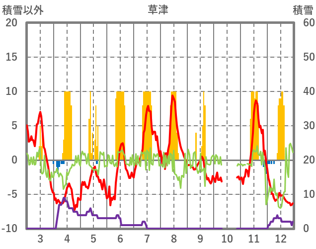 | 日 | 時 | 気温 | 降水 | 風向/風速 | 日照 | 積雪 | 降雪 |