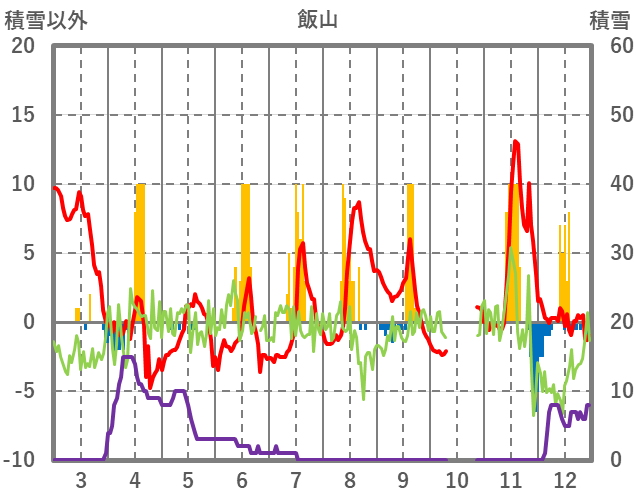 | 日 | 時 | 気温 | 降水 | 風向/風速 | 日照 | 積雪 | 降雪 |