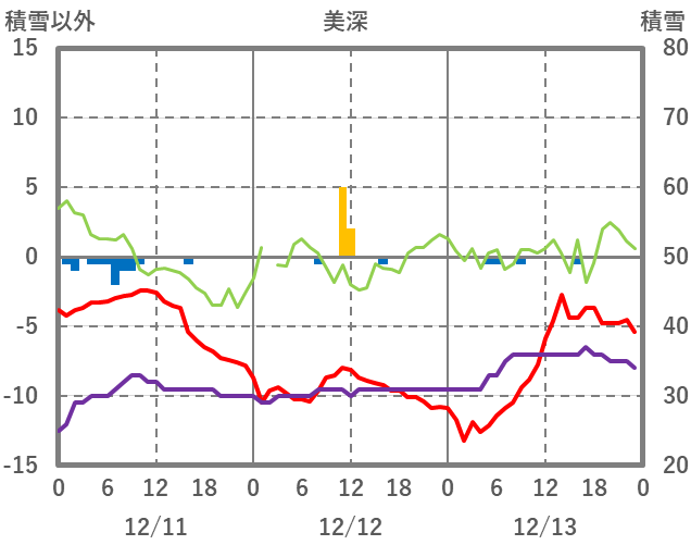 | 日 | 時 | 気温 | 降水 | 風向/風速 | 日照 | 積雪 | 降雪 |