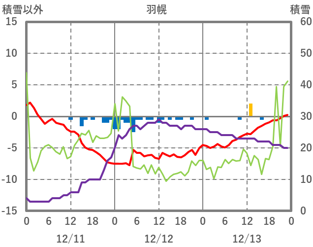 | 日 | 時 | 気温 | 降水 | 風向/風速 | 日照 | 積雪 | 降雪 |