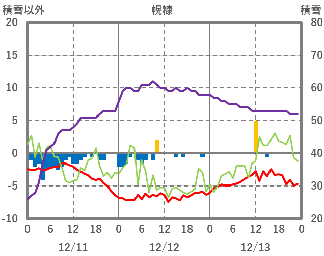 | 日 | 時 | 気温 | 降水 | 風向/風速 | 日照 | 積雪 | 降雪 |