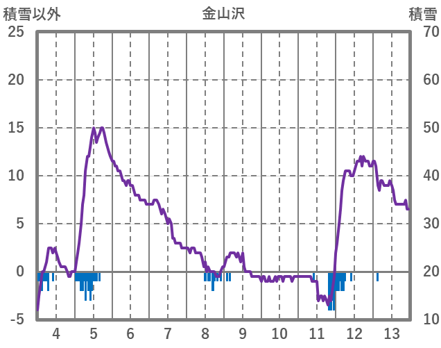 | 日 | 時 | 気温 | 降水 | 風向/風速 | 日照 | 積雪 | 降雪 |