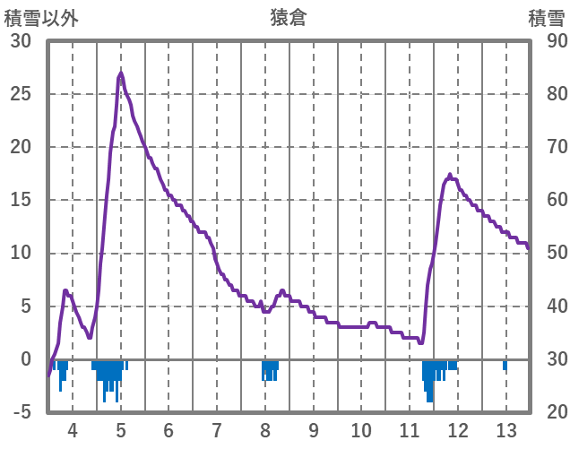 | 日 | 時 | 気温 | 降水 | 風向/風速 | 日照 | 積雪 | 降雪 |