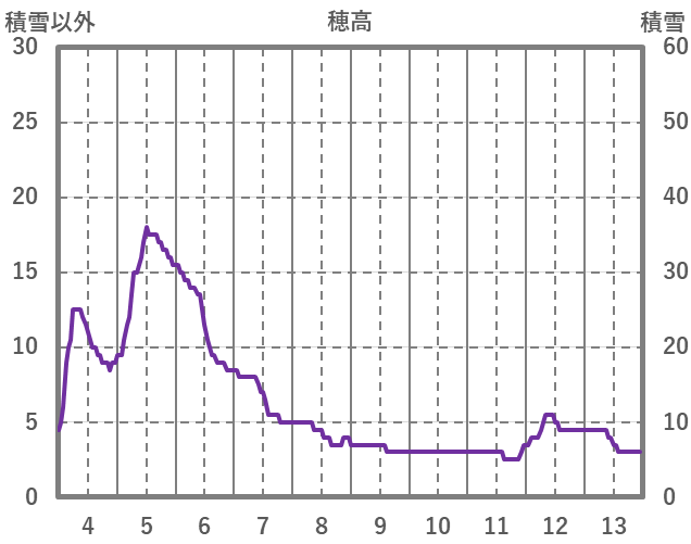 | 日 | 時 | 気温 | 降水 | 風向/風速 | 日照 | 積雪 | 降雪 |