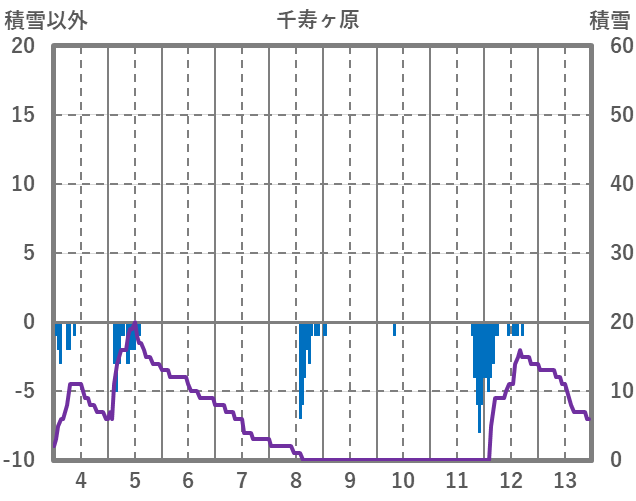 | 日 | 時 | 気温 | 降水 | 風向/風速 | 日照 | 積雪 | 降雪 |