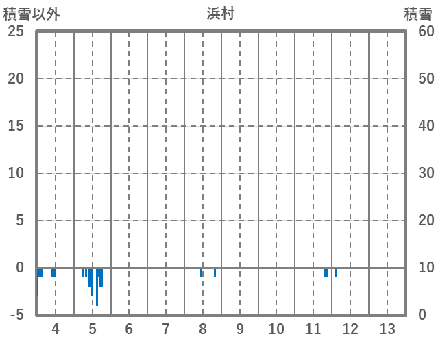 | 日 | 時 | 気温 | 降水 | 風向/風速 | 日照 | 積雪 | 降雪 |