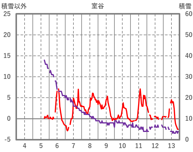 | 日 | 時 | 気温 | 降水 | 風向/風速 | 日照 | 積雪 | 降雪 |