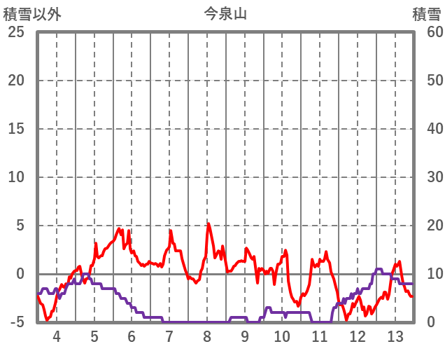 | 日 | 時 | 気温 | 降水 | 風向/風速 | 日照 | 積雪 | 降雪 |