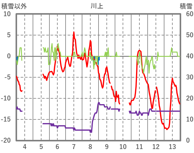 | 日 | 時 | 気温 | 降水 | 風向/風速 | 日照 | 積雪 | 降雪 |