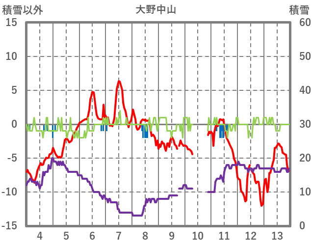 | 日 | 時 | 気温 | 降水 | 風向/風速 | 日照 | 積雪 | 降雪 |