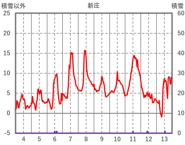 | 日 | 時 | 気温 | 降水 | 風向/風速 | 日照 | 積雪 | 降雪 |