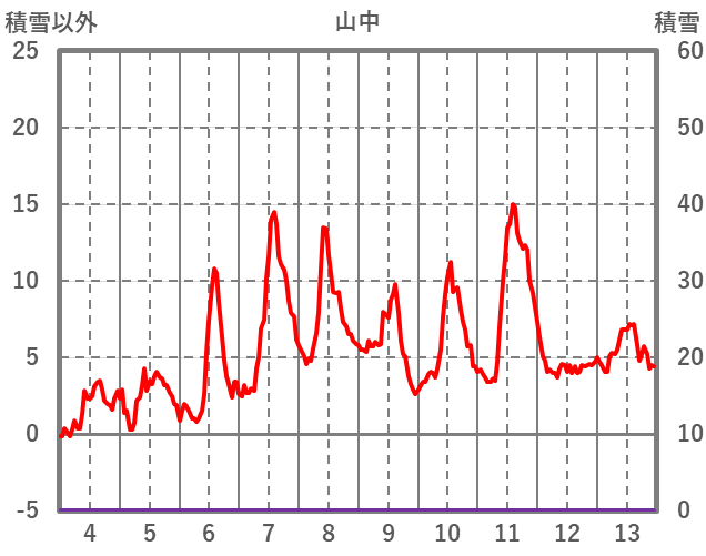 | 日 | 時 | 気温 | 降水 | 風向/風速 | 日照 | 積雪 | 降雪 |