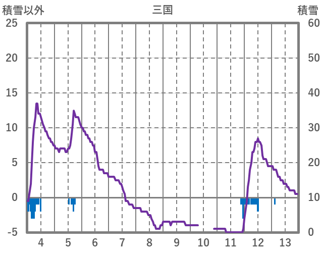 | 日 | 時 | 気温 | 降水 | 風向/風速 | 日照 | 積雪 | 降雪 |