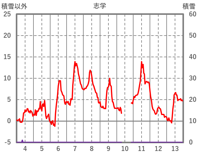 | 日 | 時 | 気温 | 降水 | 風向/風速 | 日照 | 積雪 | 降雪 |