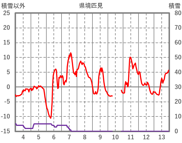 | 日 | 時 | 気温 | 降水 | 風向/風速 | 日照 | 積雪 | 降雪 |