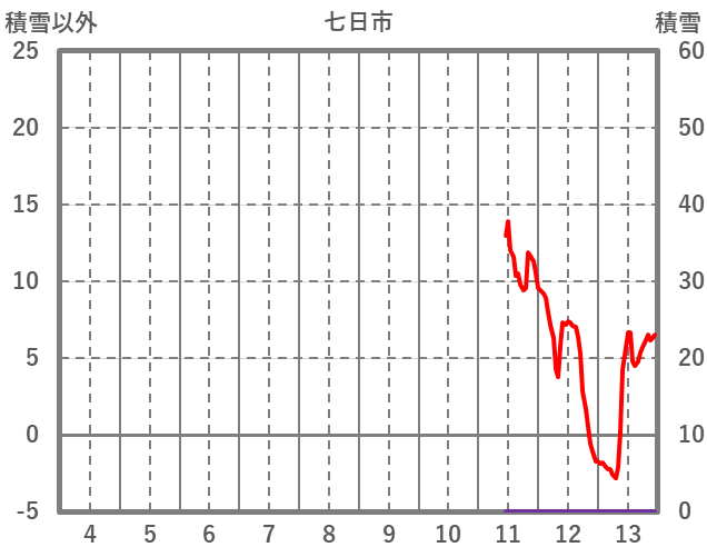 | 日 | 時 | 気温 | 降水 | 風向/風速 | 日照 | 積雪 | 降雪 |