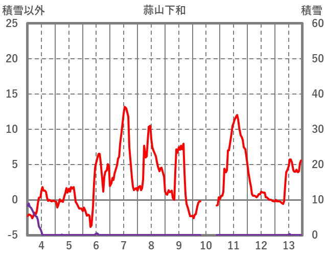 | 日 | 時 | 気温 | 降水 | 風向/風速 | 日照 | 積雪 | 降雪 |
