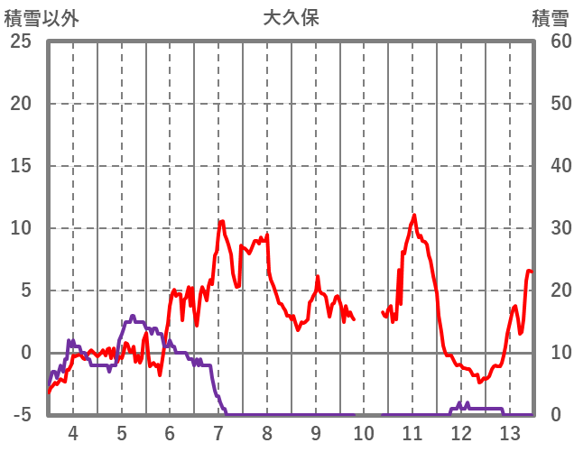 | 日 | 時 | 気温 | 降水 | 風向/風速 | 日照 | 積雪 | 降雪 |