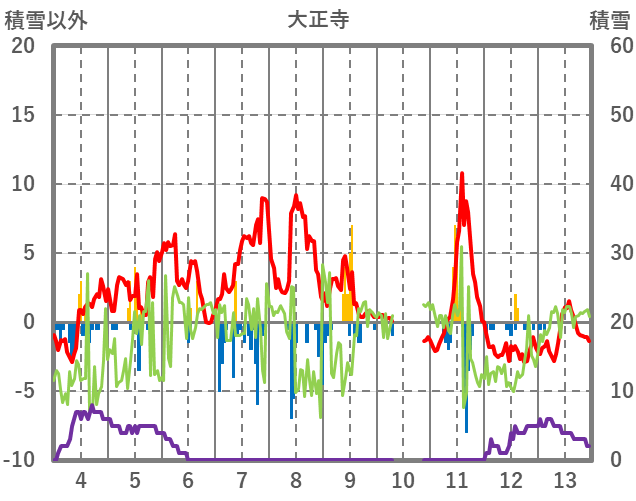 | 日 | 時 | 気温 | 降水 | 風向/風速 | 日照 | 積雪 | 降雪 |