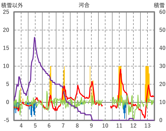 | 日 | 時 | 気温 | 降水 | 風向/風速 | 日照 | 積雪 | 降雪 |