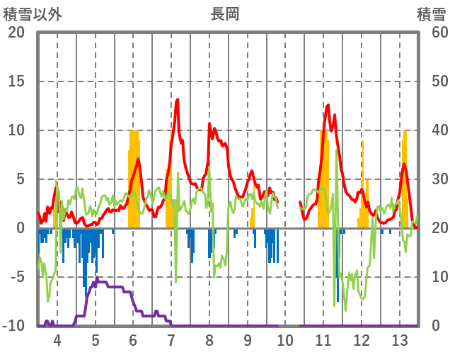 | 日 | 時 | 気温 | 降水 | 風向/風速 | 日照 | 積雪 | 降雪 |