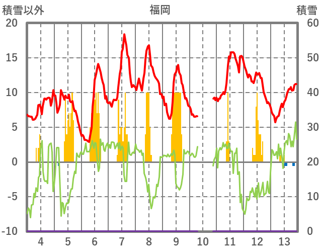 | 日 | 時 | 気温 | 降水 | 風向/風速 | 日照 | 積雪 | 降雪 |
