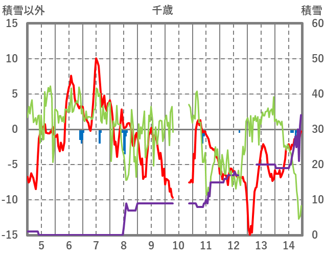 | 14 | -2.8 | 0.5 | NNW/3.5 | 20 | 0 | ||