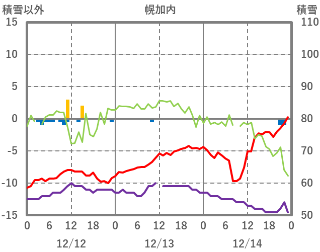 | 日 | 時 | 気温 | 降水 | 風向/風速 | 日照 | 積雪 | 降雪 |