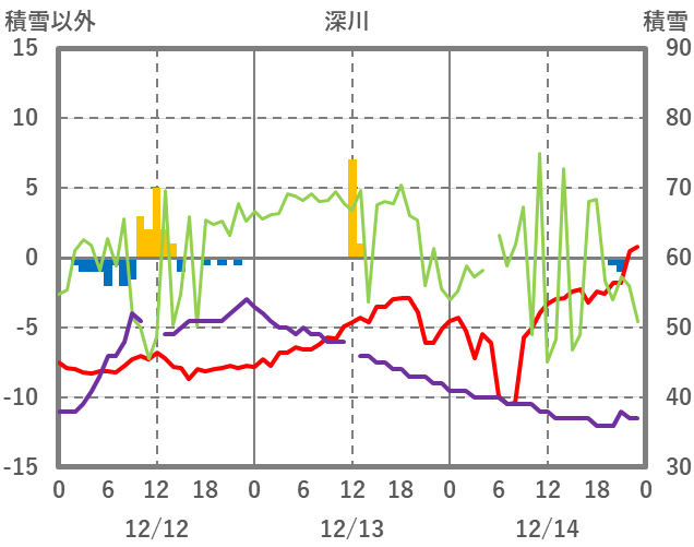 | 日 | 時 | 気温 | 降水 | 風向/風速 | 日照 | 積雪 | 降雪 |