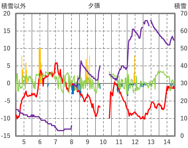 | 日 | 時 | 気温 | 降水 | 風向/風速 | 日照 | 積雪 | 降雪 |