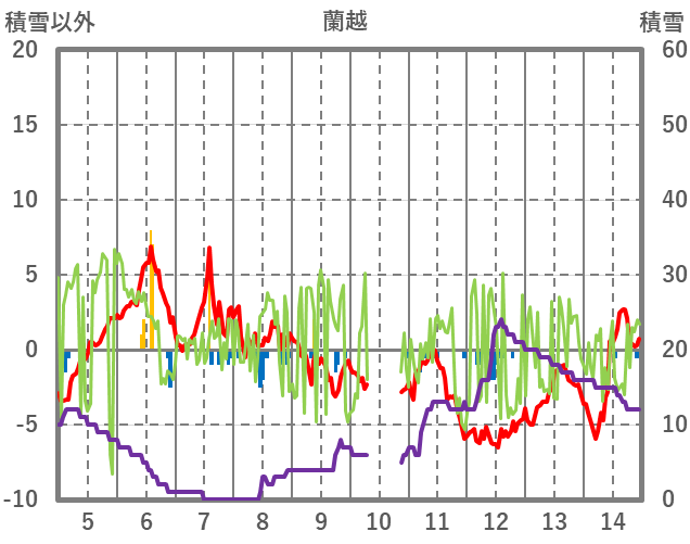 | 日 | 時 | 気温 | 降水 | 風向/風速 | 日照 | 積雪 | 降雪 |