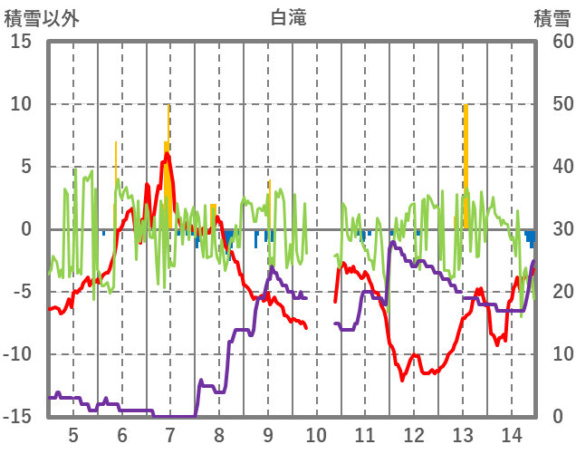 | 日 | 時 | 気温 | 降水 | 風向/風速 | 日照 | 積雪 | 降雪 |