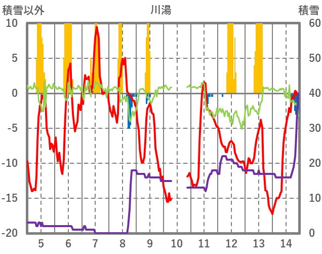| 日 | 時 | 気温 | 降水 | 風向/風速 | 日照 | 積雪 | 降雪 |