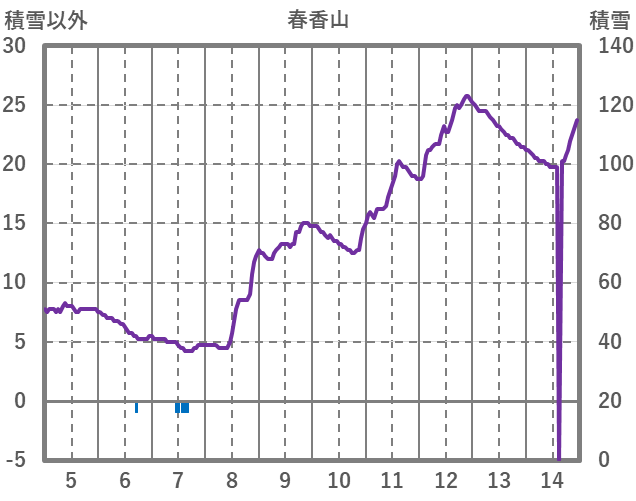 | 日 | 時 | 気温 | 降水 | 風向/風速 | 日照 | 積雪 | 降雪 |